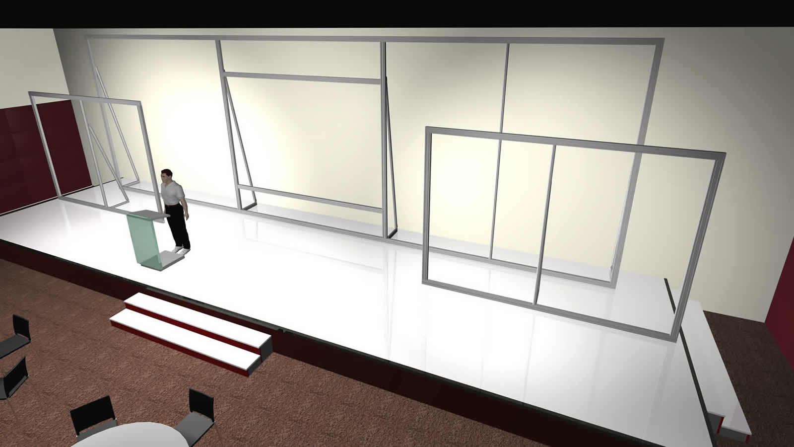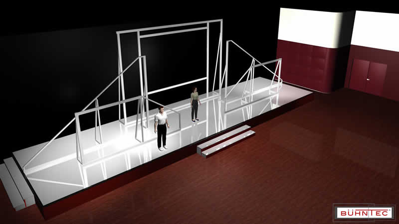 Im Gegensatz zu traditionellen Holzbau-Bühnenelementen, ist das BÜHNTEC® Bühnenrückwandsystem schnell und einfach auf nahezu jede beliebige Bühnensituation anpassbar, wobei auch sehr ausgefallene Entwürfe, mit geringem Aufwand, realisiert werden können.