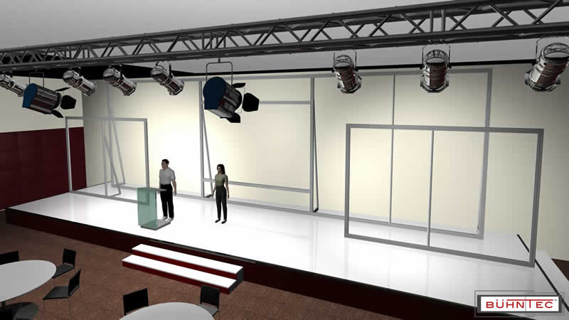 Wir bauen für Sie nicht nur Hintergrundwände für Bühnen, sondern realisieren auch ausgefallene Raumsituationen mit unserem System. Damit ist das BÜHNTEC®-System die richtige Wahl, um Ihre Veranstaltung in Szene zu setzen.